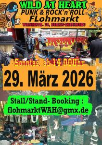 Punk & Rockabilly Flohmarkt drinnen und draussen ab 14 Uhr Staende/Stalls: flohmarkt@gmx.de |