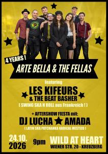 " Arte Bella & The Fellas " (Ska - Berlin) website " Les Kifeurs & The Beat Basher " (Swing Ska`n`Roll - Frankreich) aftershow mit: DJ`s Lucha + Amada |