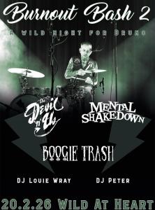 Burnout Bash II-Wild Night For Bruno " The Devil N Us "(Devils Music - Berlin) website " Mental Shakedown " (Primitive Rockabilly Trash - Berlin) website " Boogie Trash " (Psychobilly - Berlin) website aftershow mit: DJs Peter + Louie Wray |