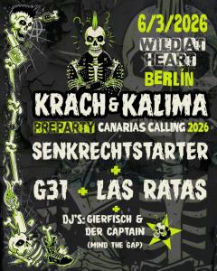 Krach & Kalima-Pre Party Canarias Calling 2026 " Senkrechtstarter "(Punk - Hamburg) website " Las Ratas " (Punk - Canary Islands) website " G 31 " (Punk - HH) website