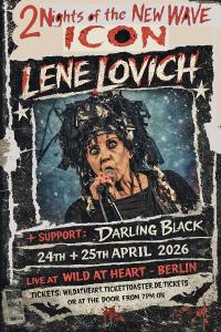 2 Nights With New Wave Legend Lene Lovich! " Lene Lovich Band "(80s Wave - UK) website " Darling Black " (Dark-Indie - USA) website aftershow mit: DJ Jacob-Cold Beat Berlin |